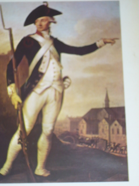 A Guarda Nacional, arama criada pelos burgueses de Paris durante a Revolução, foi inicialmente dirigida por Lafayette. Soldado com a tradicional farda dessa arma, tendo ao fundo a Bastilha toma